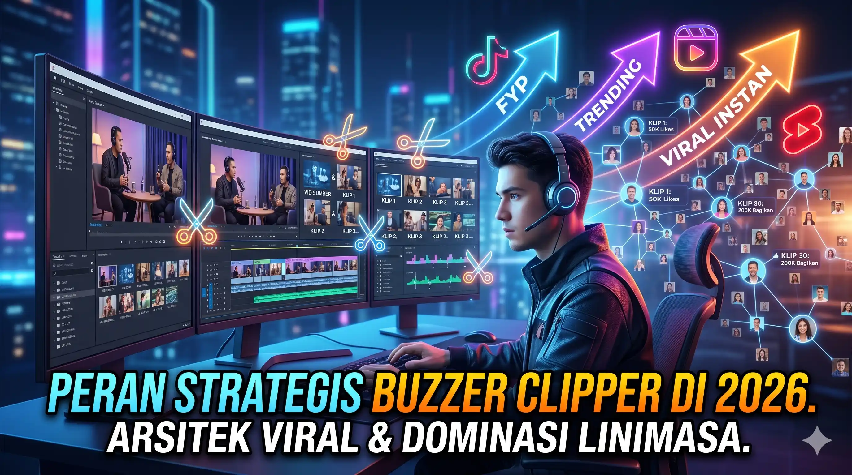 Dunia pemasaran digital dan manajemen opini telah mengalami evolusi besar seiring dengan dominasi algoritma video pendek. Jika dahulu penyebaran informasi hanya mengandalkan teks atau gambar statis, kini narasi dibentuk melalui cuplikan-cuplikan video yang cepat, padat, dan emosional. Di tengah pergeseran ini, muncul sebuah profesi strategis yang menggabungkan kemampuan penyuntingan konten dengan kekuatan distribusi massa, yaitu Buzzer Clipper Media Sosial. Mereka bukan sekadar pemotong video, melainkan arsitek persepsi yang tahu cara membuat sebuah pesan menjadi viral dalam hitungan detik.